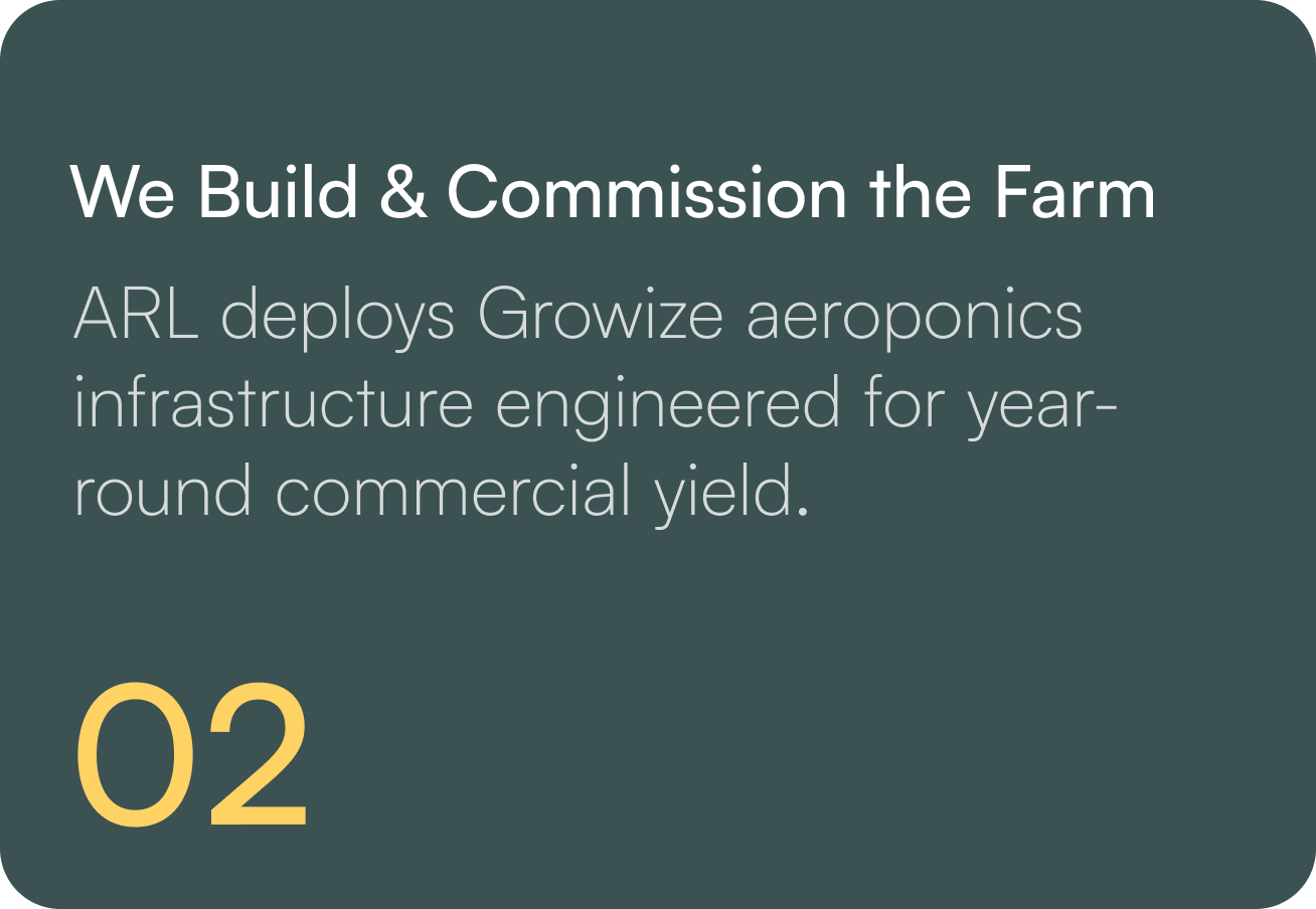 Growize farms enables individuals & institutions to own real income-generating aeroponic farm assets, while all development, operations and management are handled end-to-end by experts.