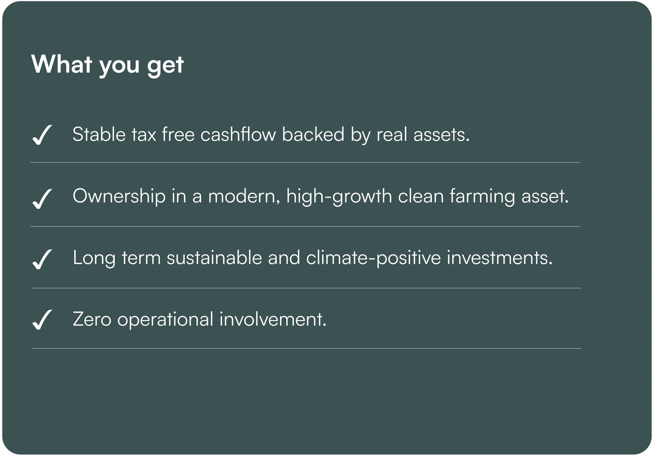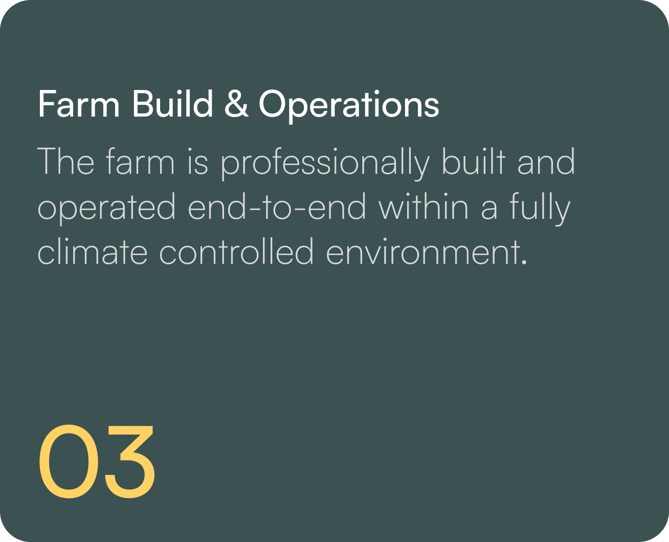 Own a future proof farm - operated by experts, designed for stability, sustainability and scale.