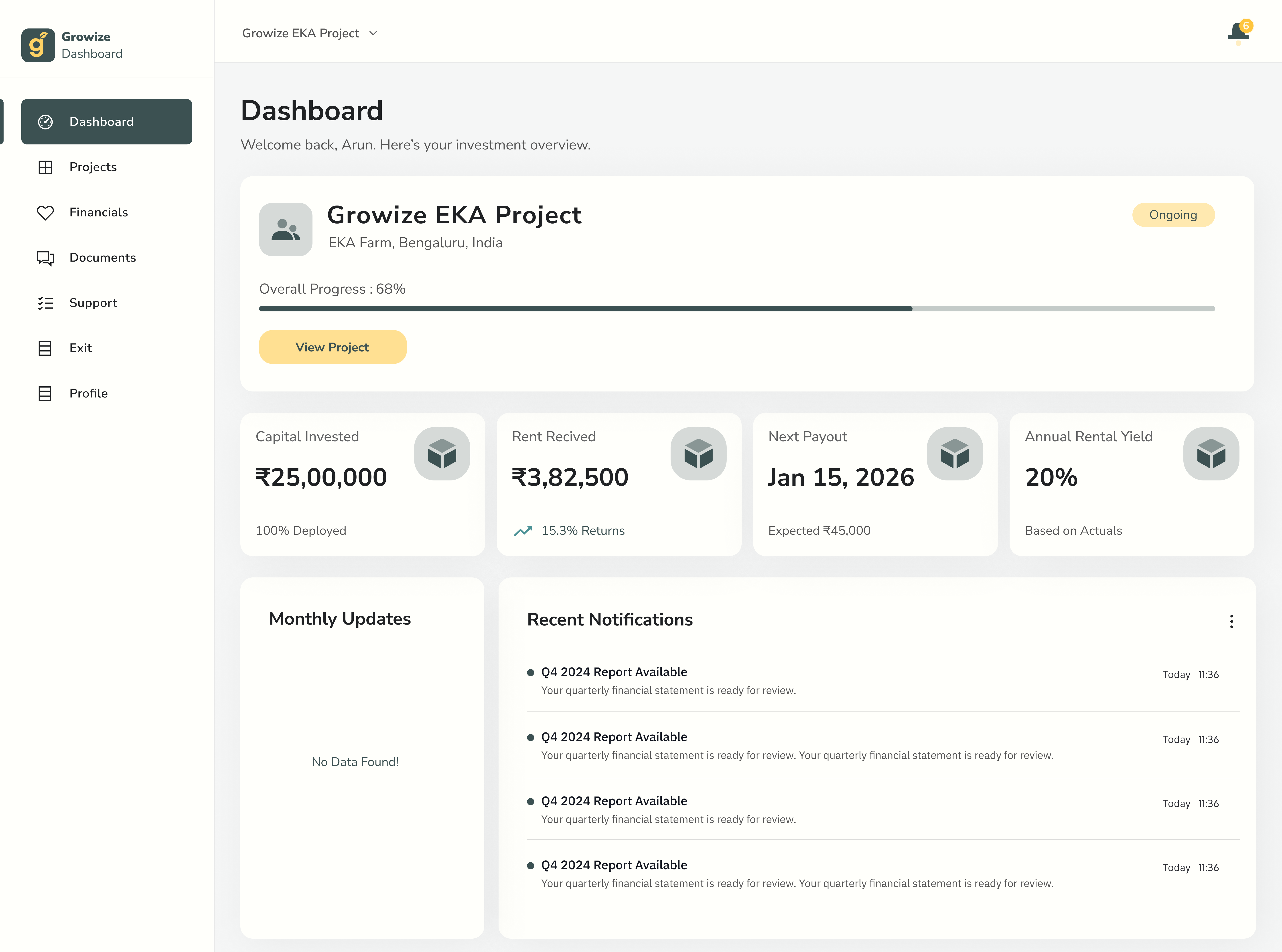 A single digital dashboard to track your farm’s performance, operations, and impact. Full transparency across build, operations, yields, and outcomes—end to end.